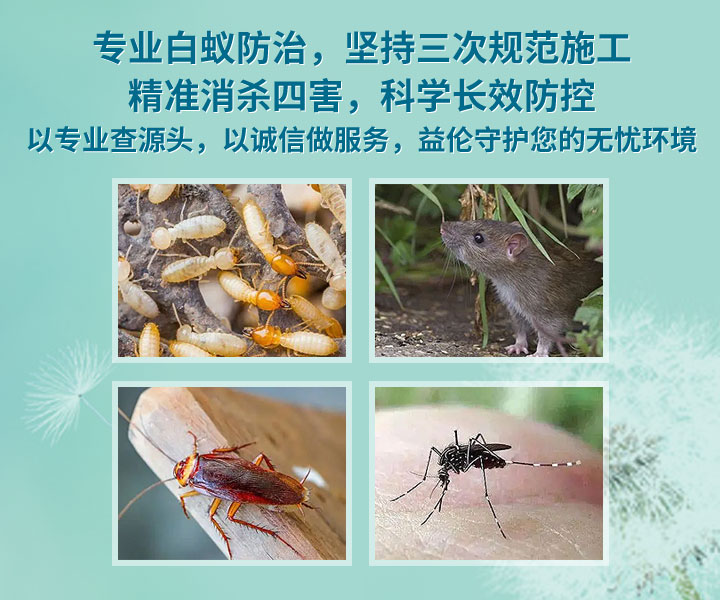 广州市益伦白蚁害虫防治有限公司是一家专业白蚁防治、杀虫灭鼠、杀灭红火蚁、除四害服务、四害消杀、虫害防治、虫控消杀、灭蚊蝇蟑螂等病媒生物防制、各种害虫消杀、防疫消毒杀菌、驱蛇防蛇、有害生物防治公司,注册资金人民币叁佰万元,从业人员23人。本公司获得了广州市白蚁防治资质证书、广州市有害生物防制服务资质证书,通过了ISO9001国际质量管理体系认证,ISO14001环境管理体系认证,ISO45001职业健康安全管理体系认证,公司管理规范,服务流程标准,全部员工持证上岗。技术力量雄厚,经过多年病媒生物防控的实践经验,积累了丰富的白蚁虫害消杀经验,为白蚁防治除四害消杀行业作出了多次突破性的贡献,为白蚁虫害防治行业解决了大量"老大难”的问题,成为了有害生物防制行业的标杆。公司拥有专业的技术团队,具备丰富的理论知识和虫害防治实践经验,施工服务队伍接受过专业有害生物防治技术培训,经考核获得建筑工程白蚁防治师、白蚁防治生物药物检测师、水利工程白蚁防治师、白蚁防治工程师、有害生物防制员。为适应客户对公司专业化防治的高端要求,公司组织人员定期参加各类有关虫害防制行业的培训与会议,增加虫害知识和提升虫害防制技术能力。